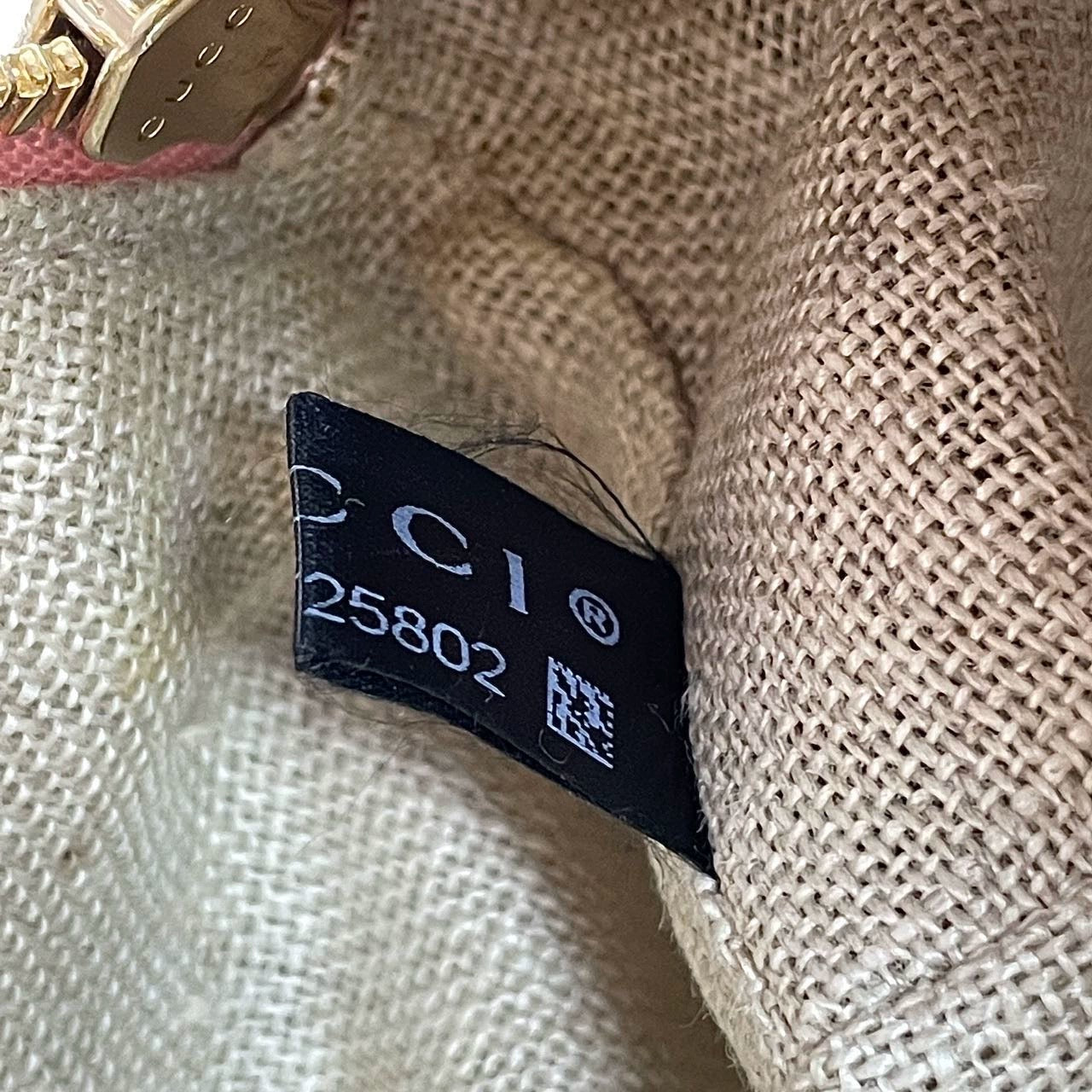 This charming Gucci Soho satchel is crafted from soft pink grained leather, featuring a structured dome silhouette and double top handles. Accented with gold-tone hardware and the signature interlocking GG charm, this bag is both elegant and versatile. Its zip-around closure opens to a spacious interior, making it perfect for everyday essentials. A detachable shoulder strap allows for multiple carry options.