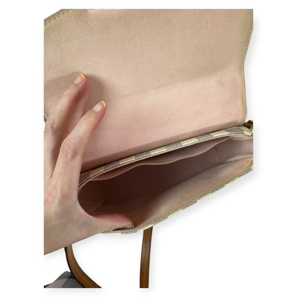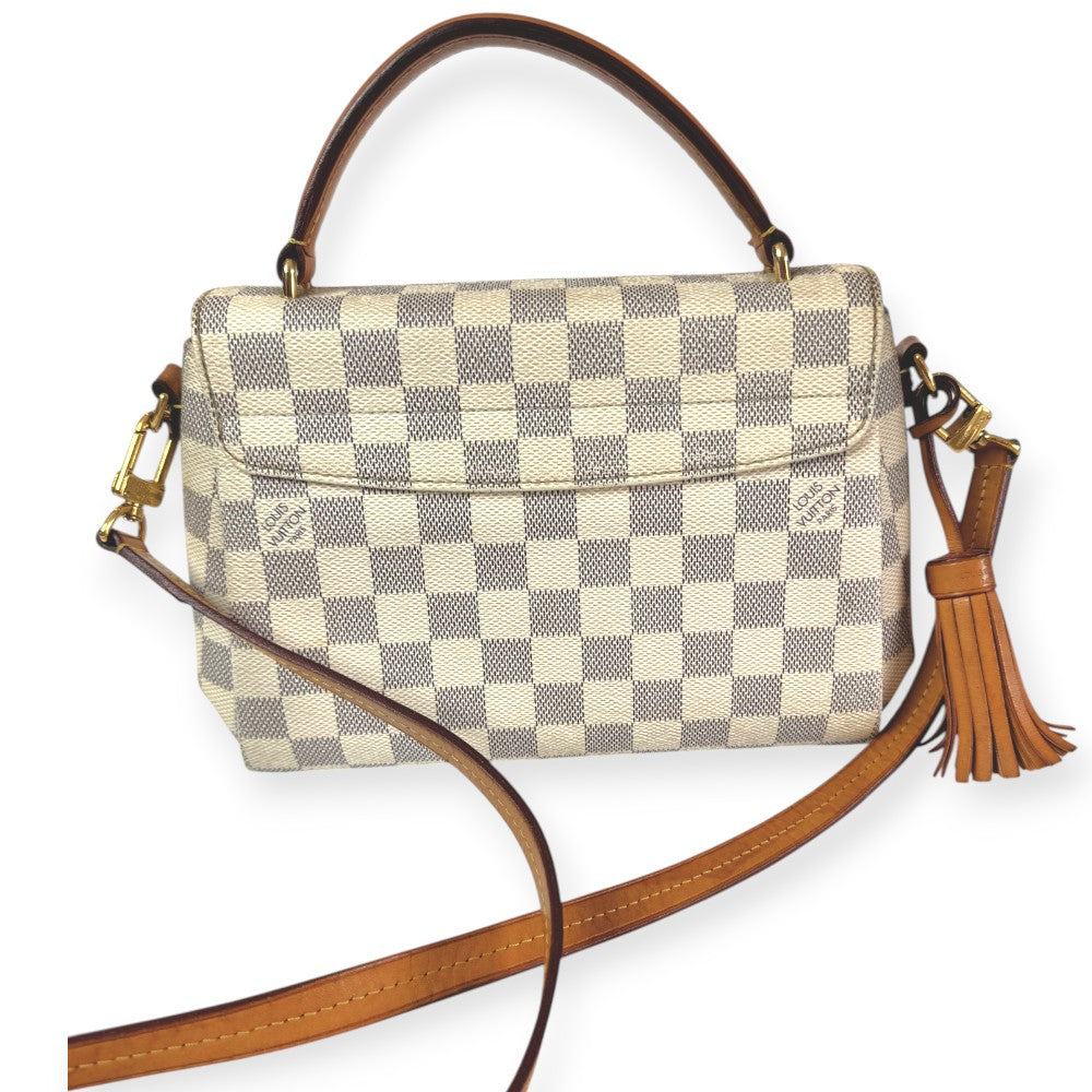 This stylish pre-owned crossbody bag features the iconic checkered canvas, gold-tone hardware, a structured top handle, and a detachable leather shoulder strap. The perfect blend of elegance and function for everyday or travel use.