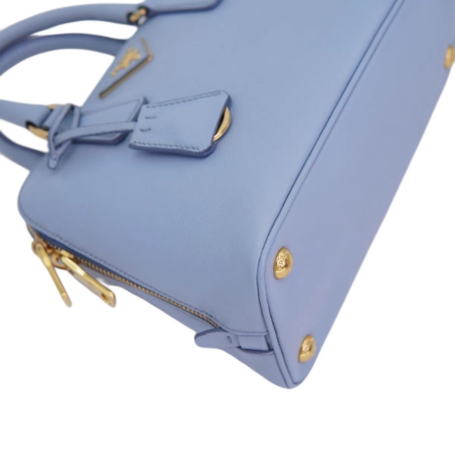 Pre-Owned Prada Saffiano Leather Dome Satchel in Light Blue with Strap